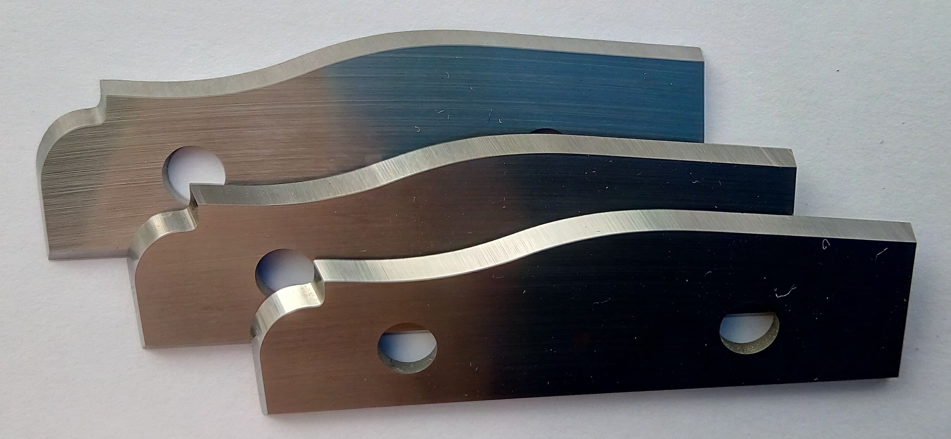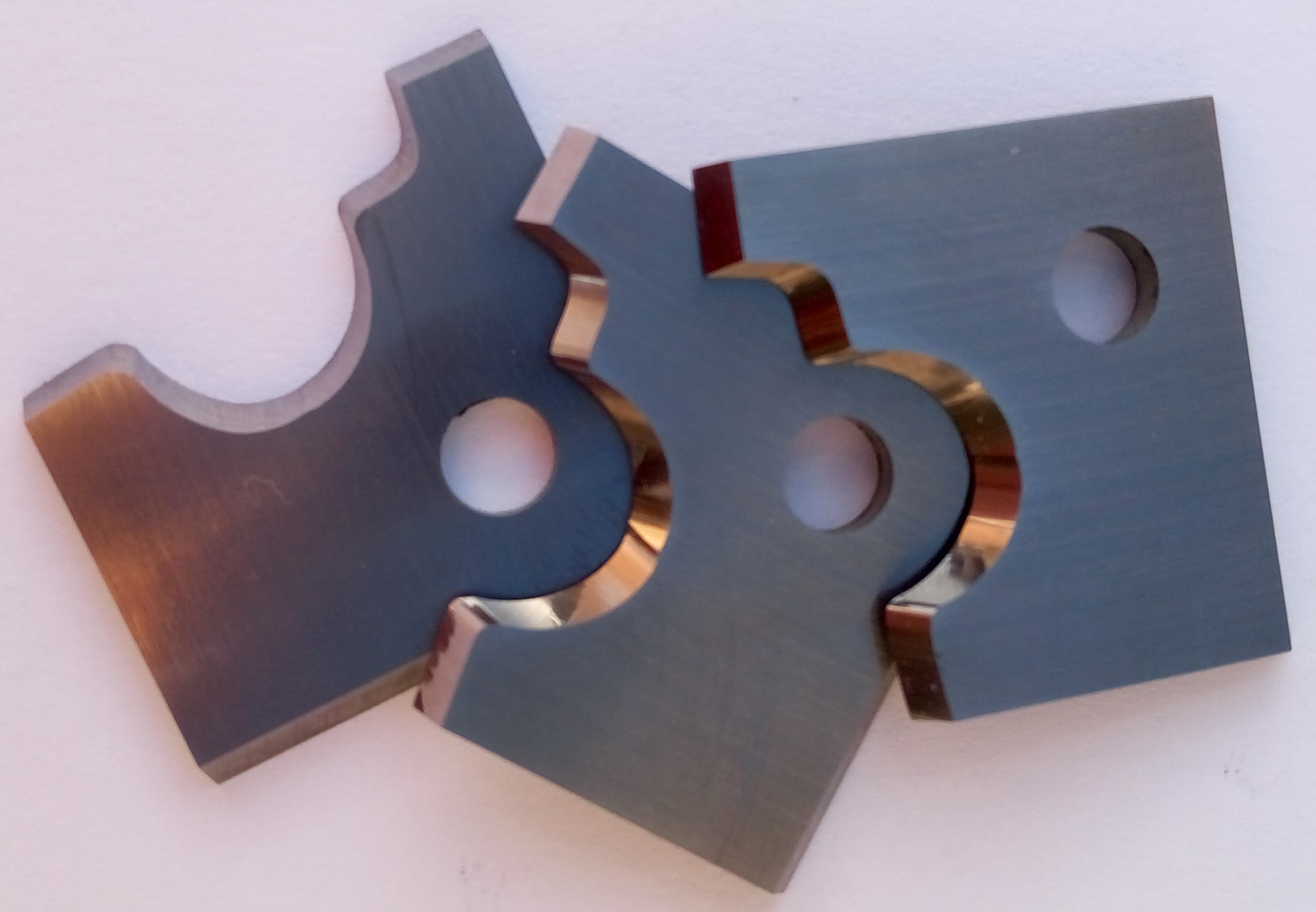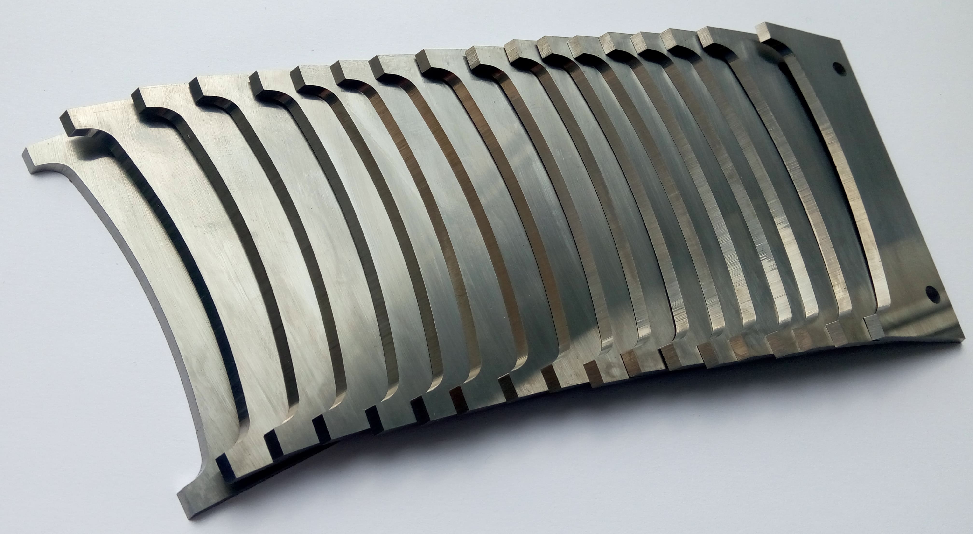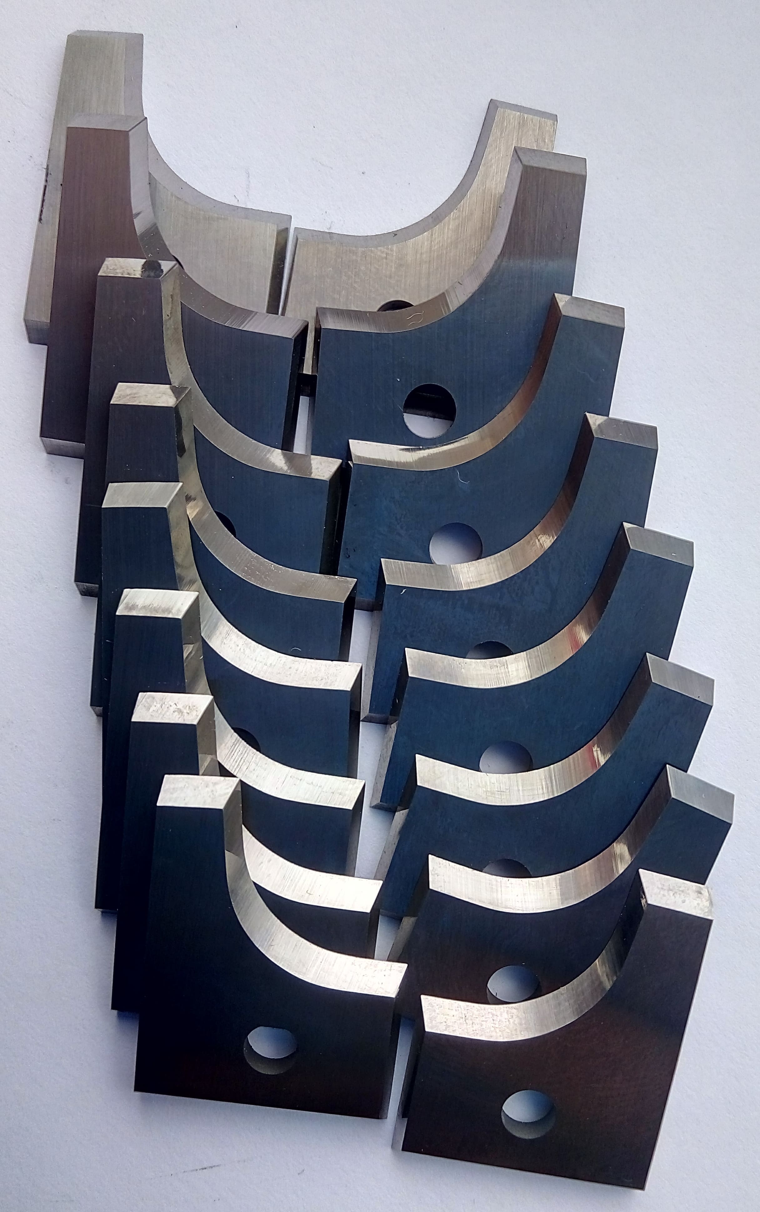 Одним из направлений нашей деятельности является производство стальных ножей (HSS). Используемые нами бланкеты позволяют производить их многократную переточку без потери размеров обрабатываемой детали, с полным восстановлением режущих свойств. От Вас требуется только пример изделия, эскиз или чертеж. Ножи изготавливаются из стальных бланкет HSS c cодержанием 18% Вольфрама.